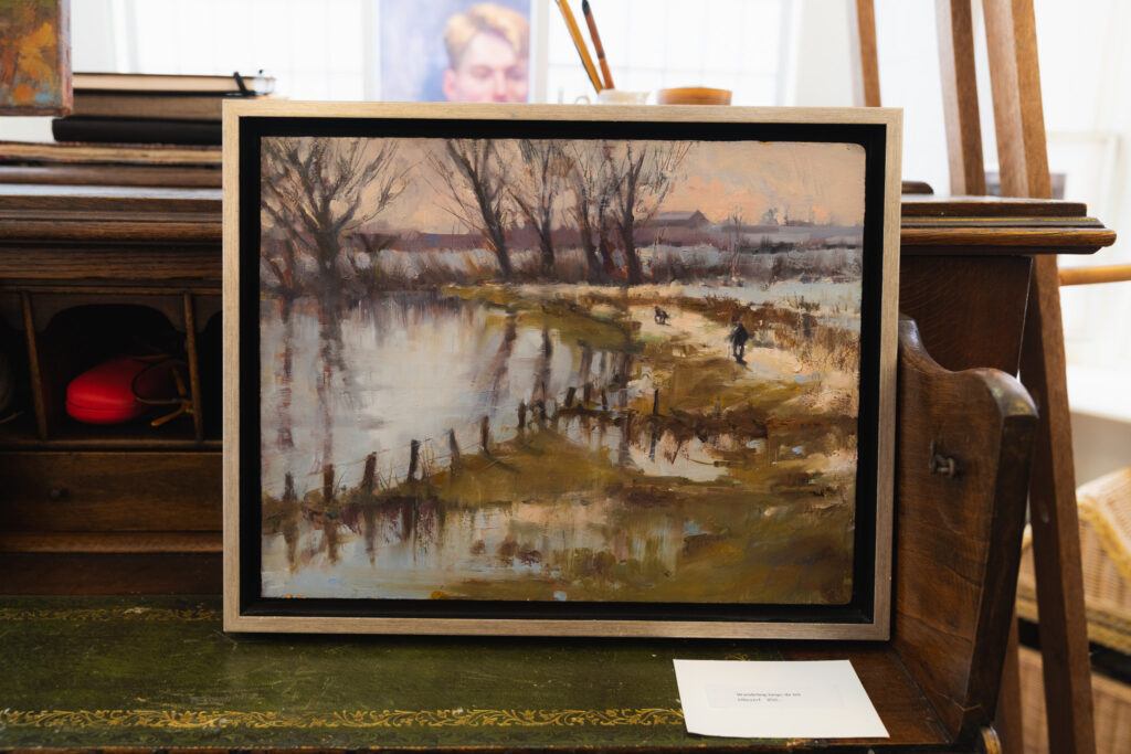In mijn atelier vindt u mijn werk door de jaren heen. U zult werken zien in uiteenlopende thema’s: dieren, portretten, modellen, stad en land, muziek en dans, interieur en schetsen. Wat deze onderwerpen verbindt, is mijn zoektocht naar de mens en zijn omgeving, naar stilte en expressie, naar het moment dat iets wezenlijks zichtbaar wordt.